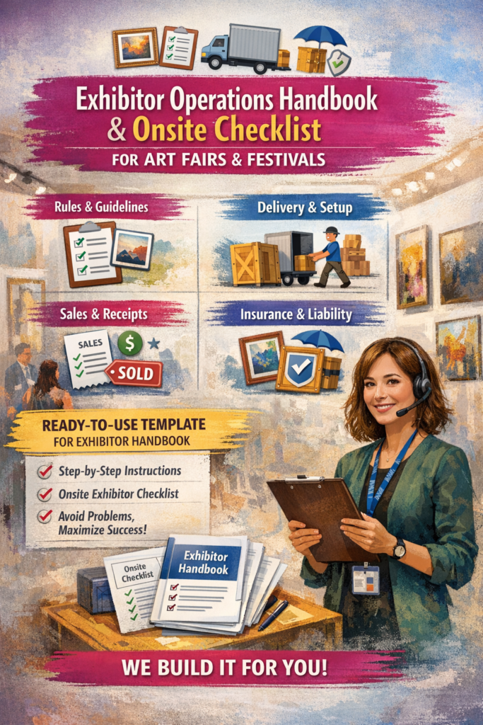 If you want this done professionally, The Art Fair Guy can build your complete exhibitor operations handbook, customized to your venue, booth types, local regulations, shipping reality, and your brand tone.